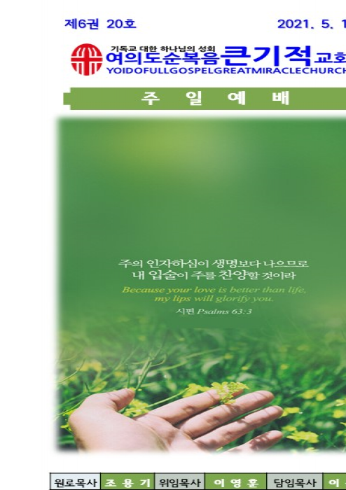 2021년 9월 19일 주일예배 주보 2021년 9월 19일 주일예배 주보입니다.