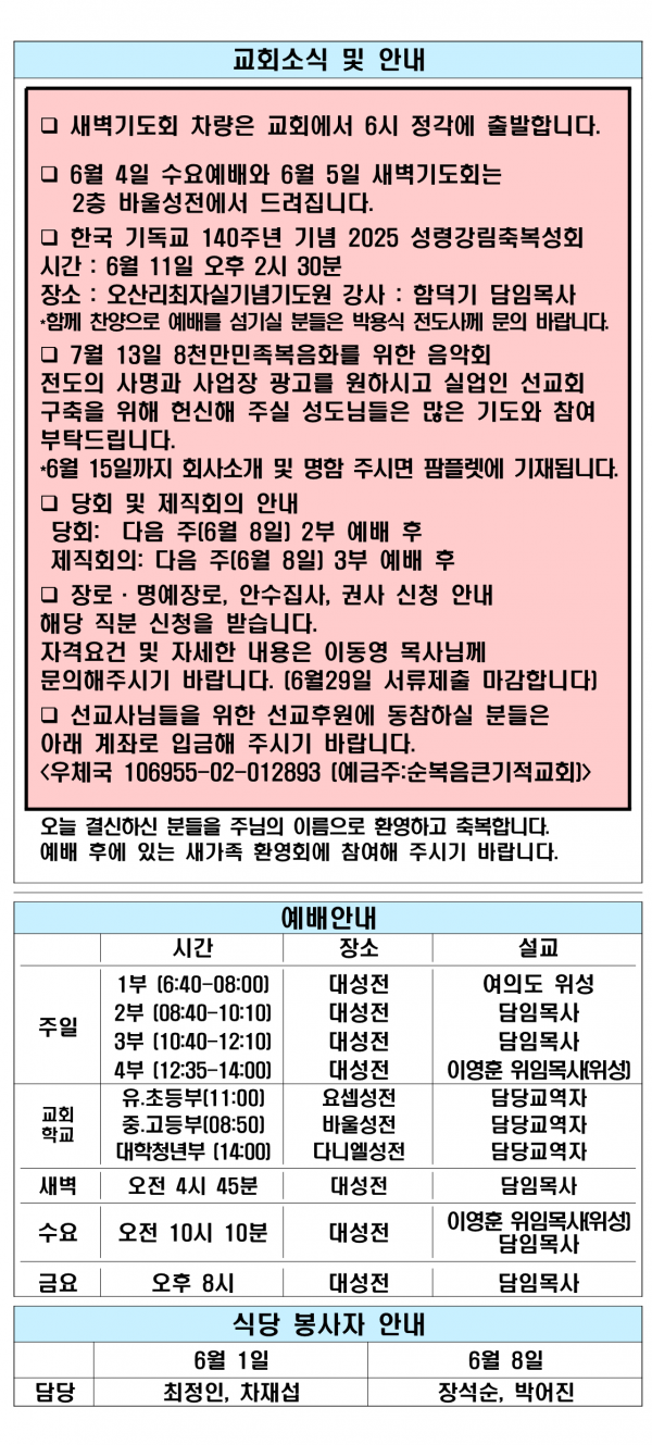 2025년 6월 1일 성찬주일 주보입니다